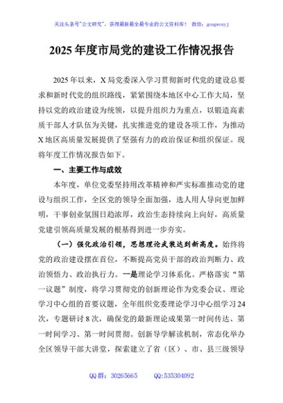 / 2025年度市局党的建设工作情况报告