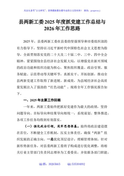 / 县两新工委2025年度抓党建工作总结与2026年工作思路