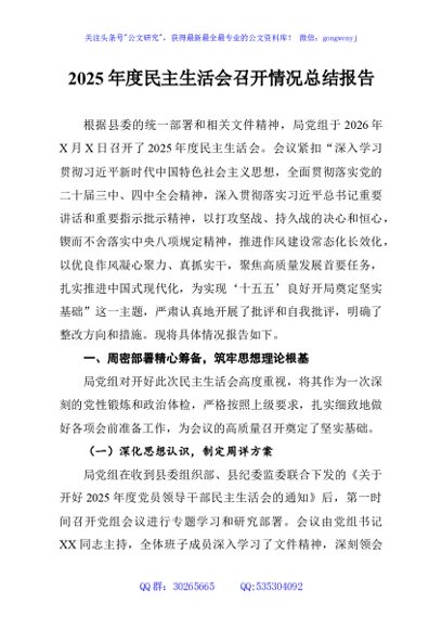 XX区县政府办公室2025年度民主生活会班子对照检查材料(五个带头)