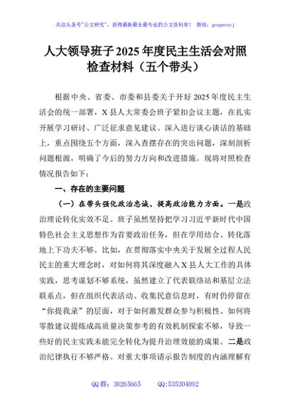 / 人大领导班子2025年度民主生活会对照检查材料(五个带头)