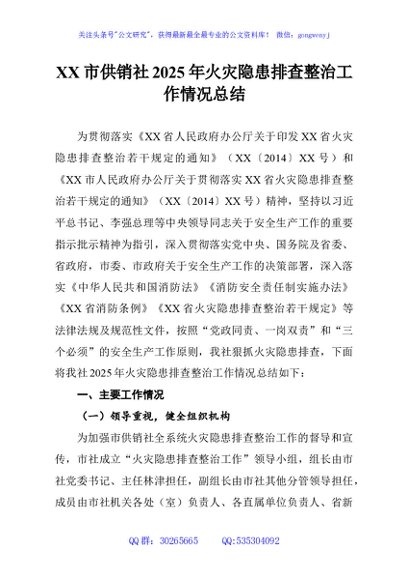 / XX市供销社2025年火灾隐患排查整治工作情况总结