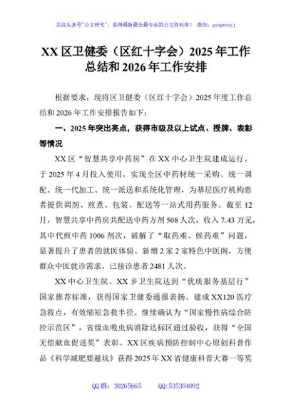 / XX区卫健委(区红十字会)2025年工作总结和2026年工作安排