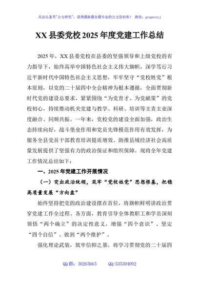 / XX县委党校2025年度党建工作总结