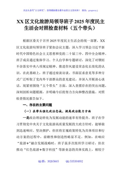 / XX区文化旅游局领导班子2025年度民主生活会对照检查材料(五个带头)