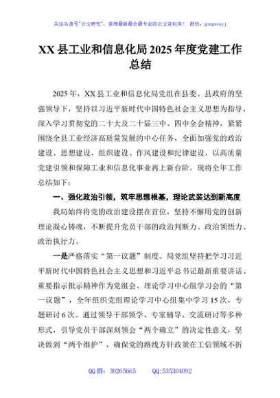 / XX县工业和信息化局2025年度党建工作总结