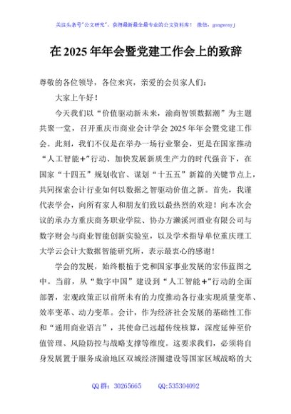 / 在2025年年会暨党建工作会上的致辞