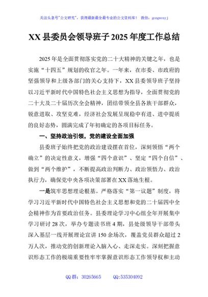 / XX县委员会领导班子2025年度工作总结