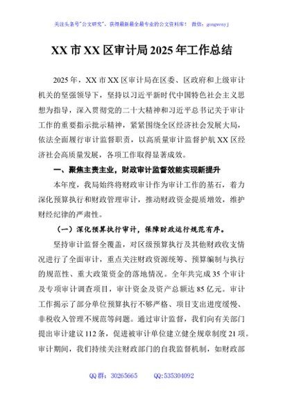 / XX市XX区审计局2025年工作总结