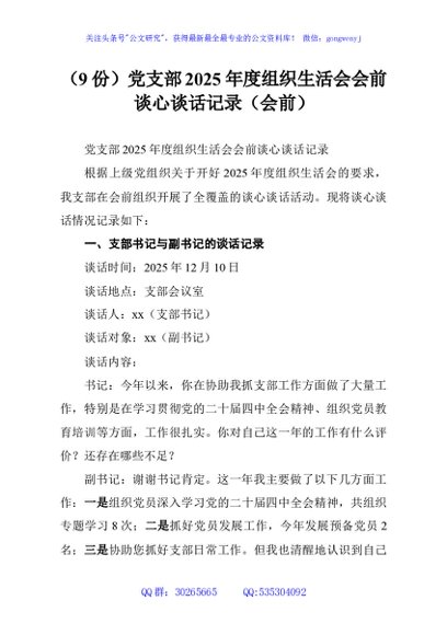 / (9份)党支部2025年度组织生活会会前谈心谈话记录(会前)