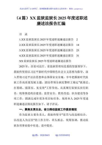 / (4篇)XX监狱监狱长2025年度述职述廉述法报告汇编