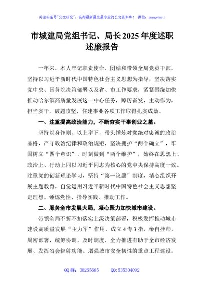 / 市城建局党组书记、局长2025年度述职述廉报告