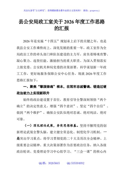 / 县公安局政工室关于2026年度工作思路的汇报