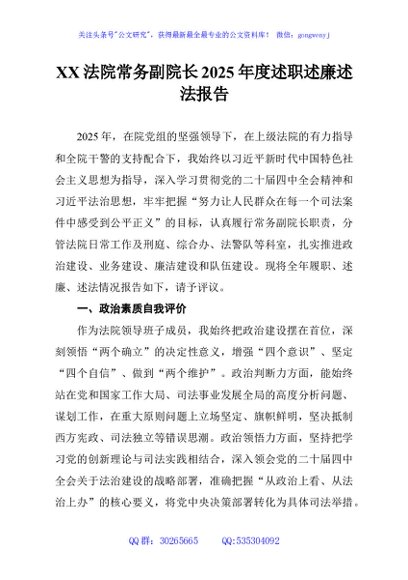 / XX法院常务副院长2025年度述职述廉述法报告