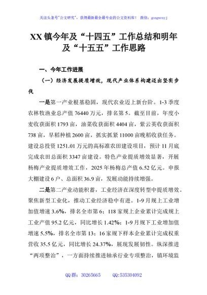 XX镇今年及“十四五”工作总结和明年及“十五五”工作思路