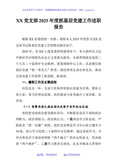 / XX党支部2025年度抓基层党建工作述职报告