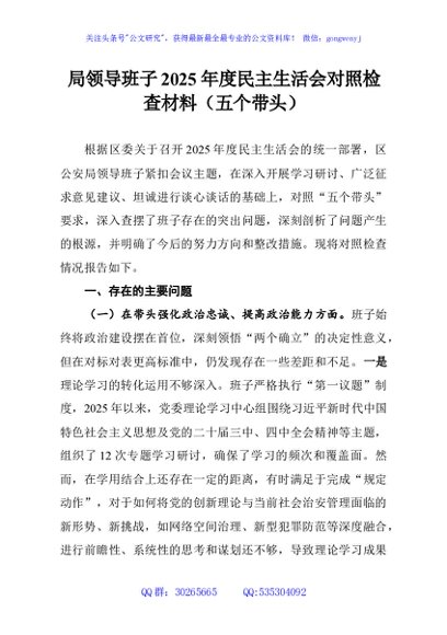 / 局领导班子2025年度民主生活会对照检查材料(五个带头)