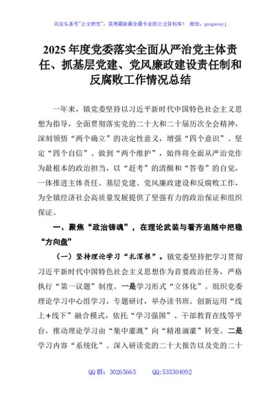 / 2025年度党委落实全面从严治党主体责任、抓基层党建、党风廉政建设责任制和反腐败工作情况总结