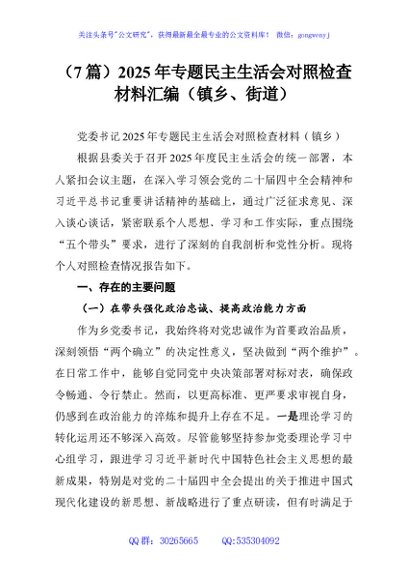 / (7篇)2025年专题民主生活会对照检查材料汇编(镇乡、街道)