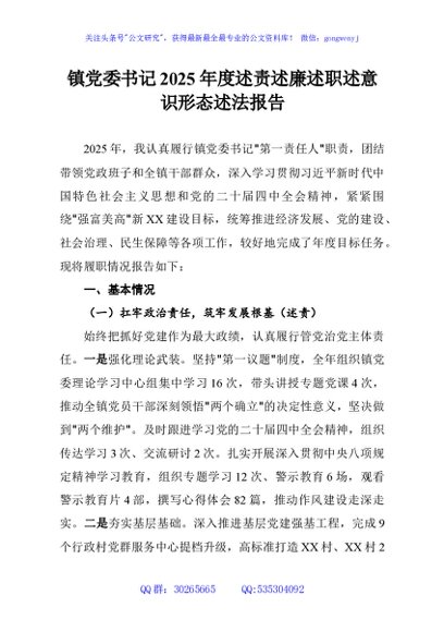 / 镇党委书记2025年度述责述廉述职述意识形态述法报告