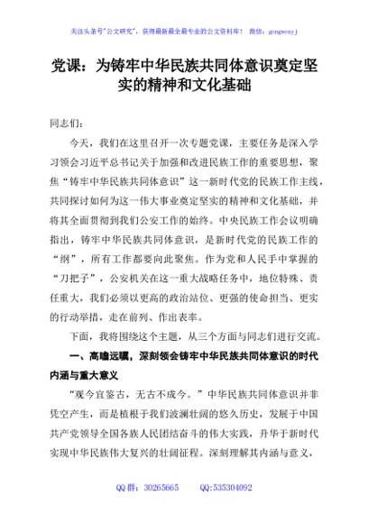 / 党课:为铸牢中华民族共同体意识奠定坚实的精神和文化基础
