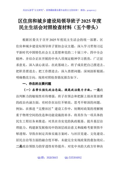 / 区住房和城乡建设局领导班子2025年度民主生活会对照检查材料(五个带头)