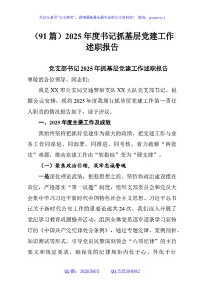 / (91篇)2025年度书记抓基层党建工作述职报告