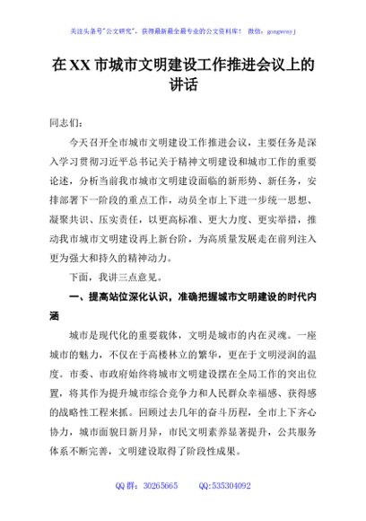 / 在XX市城市文明建设工作推进会议上的讲话