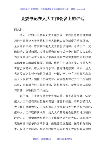 / 县委书记在人大工作会议上的讲话