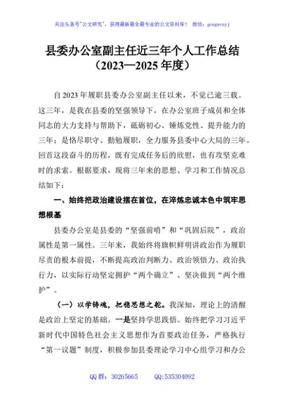 / 县委办公室副主任近三年个人工作总结(2023—2025年度)