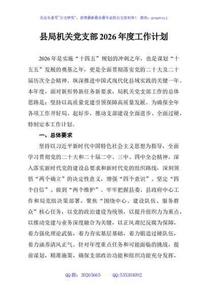 / 县局机关党支部2026年度工作计划