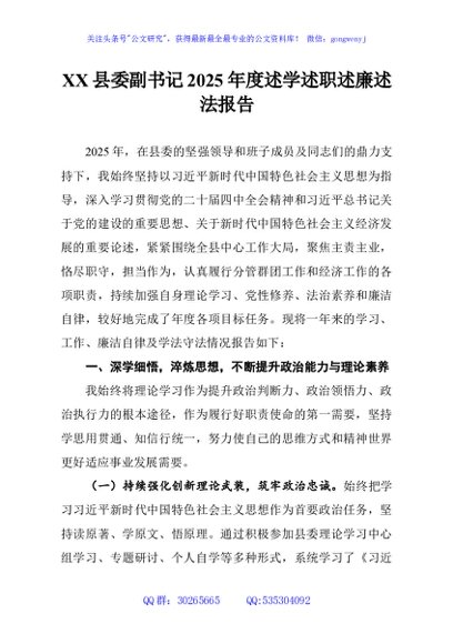 / XX县委副书记2025年度述学述职述廉述法报告