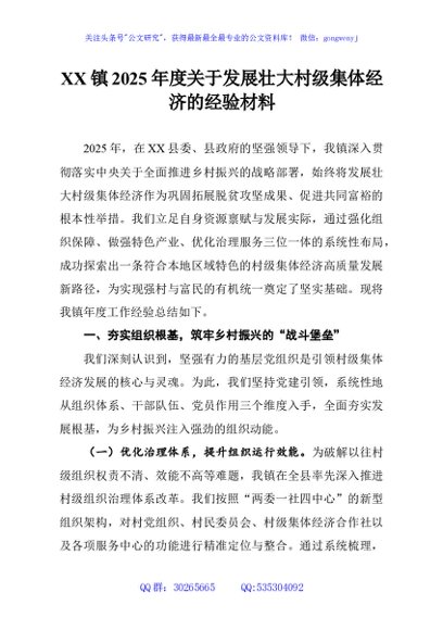 / XX镇2025年度关于发展壮大村级集体经济的经验材料