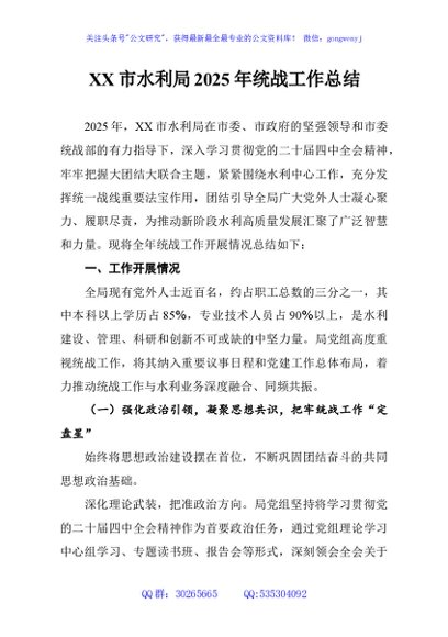 / XX市水利局2025年统战工作总结