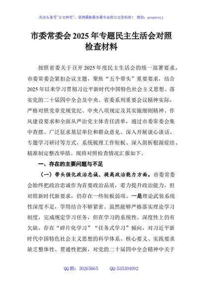 / 市委常委会2025年专题民主生活会对照检查材料