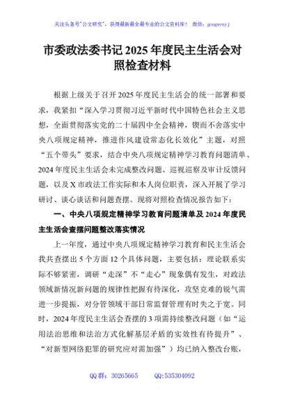 / 市委政法委书记2025年度民主生活会对照检查材料
