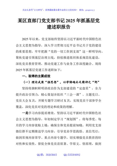 / 某区直部门党支部书记2025年抓基层党建述职报告