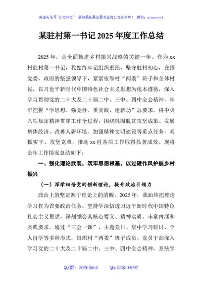 / 某驻村第一书记2025年度工作总结