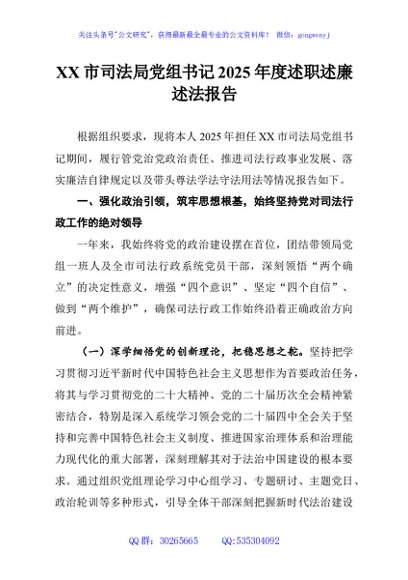 / XX市司法局党组书记2025年度述职述廉述法报告