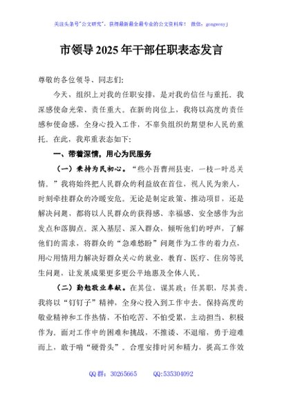 / 市领导2025年干部任职表态发言
