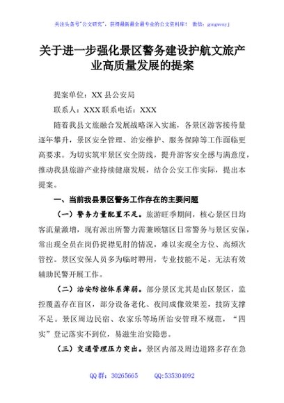 / 关于进一步强化景区警务建设护航文旅产业高质量发展的提案