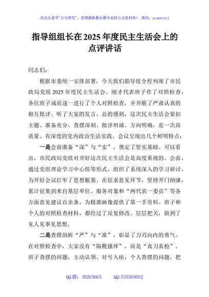 / 指导组组长在2025年度民主生活会上的点评讲话