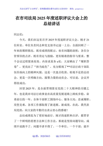 / 在市司法局2025年度述职评议大会上的总结讲话
