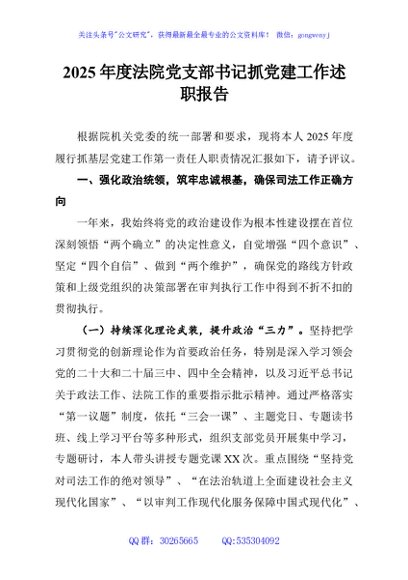 / 2025年度法院党支部书记抓党建工作述职报告