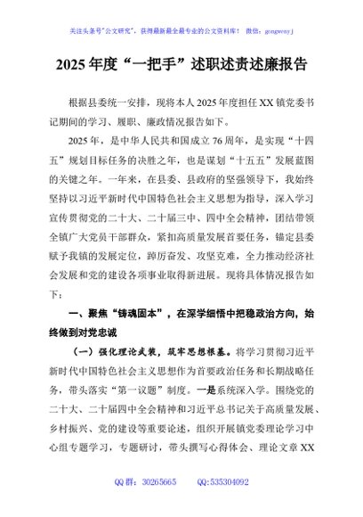 / 2025年度“一把手”述职述责述廉报告