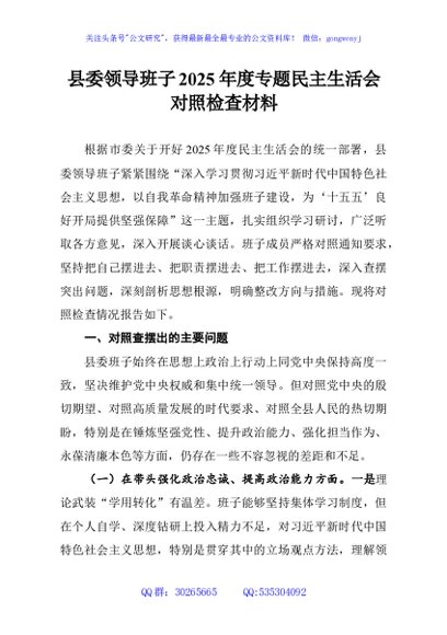/ 县委领导班子2025年度专题民主生活会对照检查材料