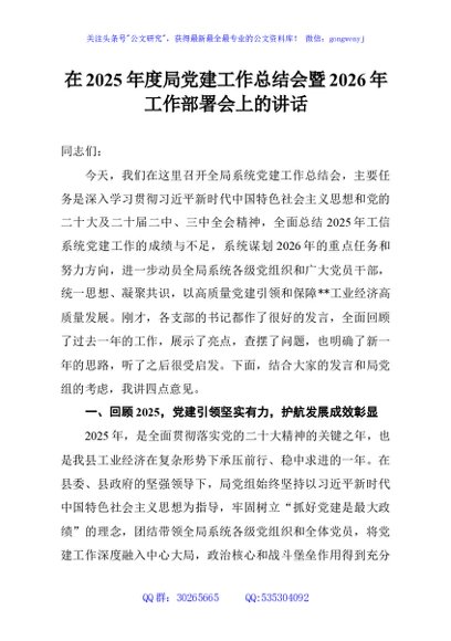 / 在2025年度局党建工作总结会暨2026年工作部署会上的讲话
