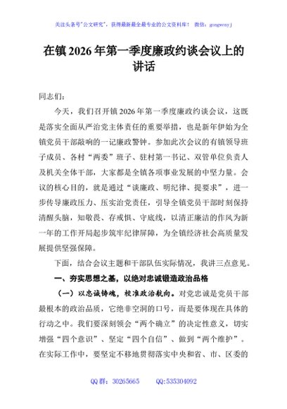 / 在镇2026年第一季度廉政约谈会议上的讲话