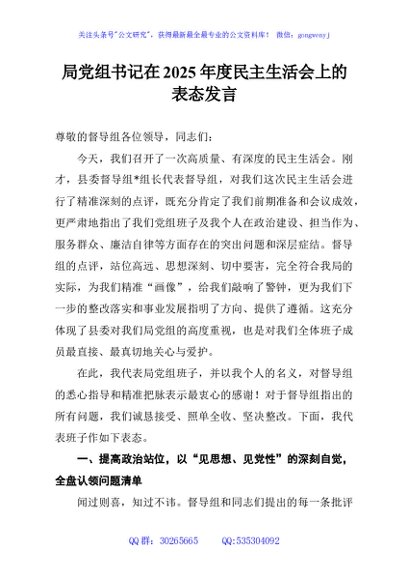 / 局党组书记在2025年度民主生活会上的表态发言