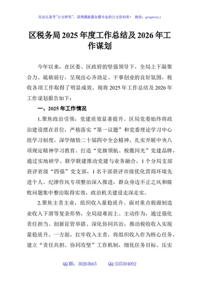 / 区税务局2025年度工作总结及2026年工作谋划