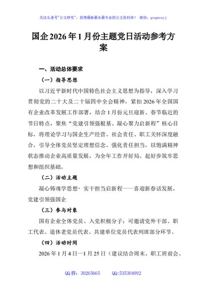 / 国企2026年1月份主题党日活动参考方案